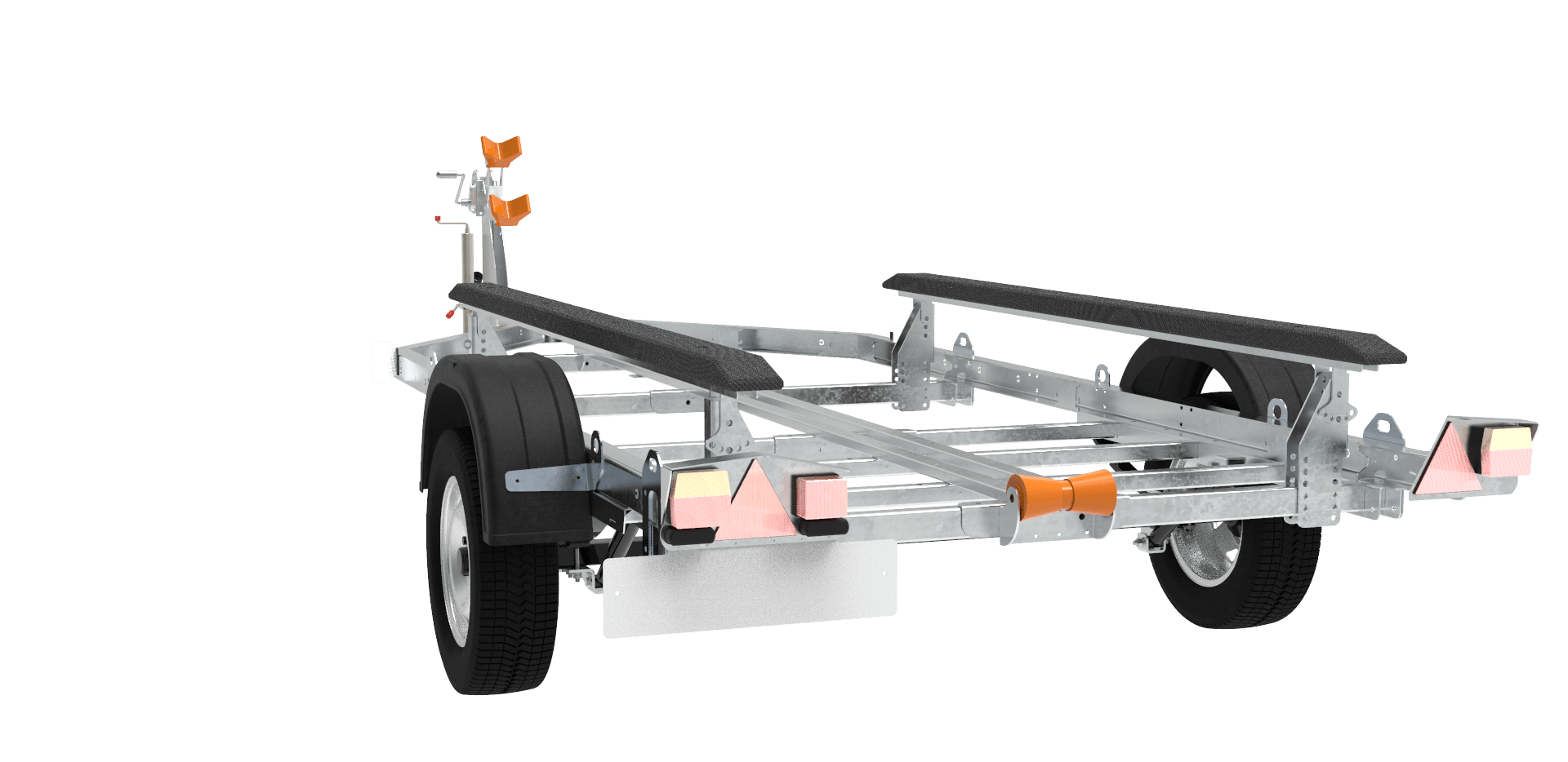 • Тип подвески: рессорная с гидравлическими телескопическими амортизаторами. Изменяемое положение подвески (шасси) прицепа позволяет правильно распределить центр тяжести судна.
