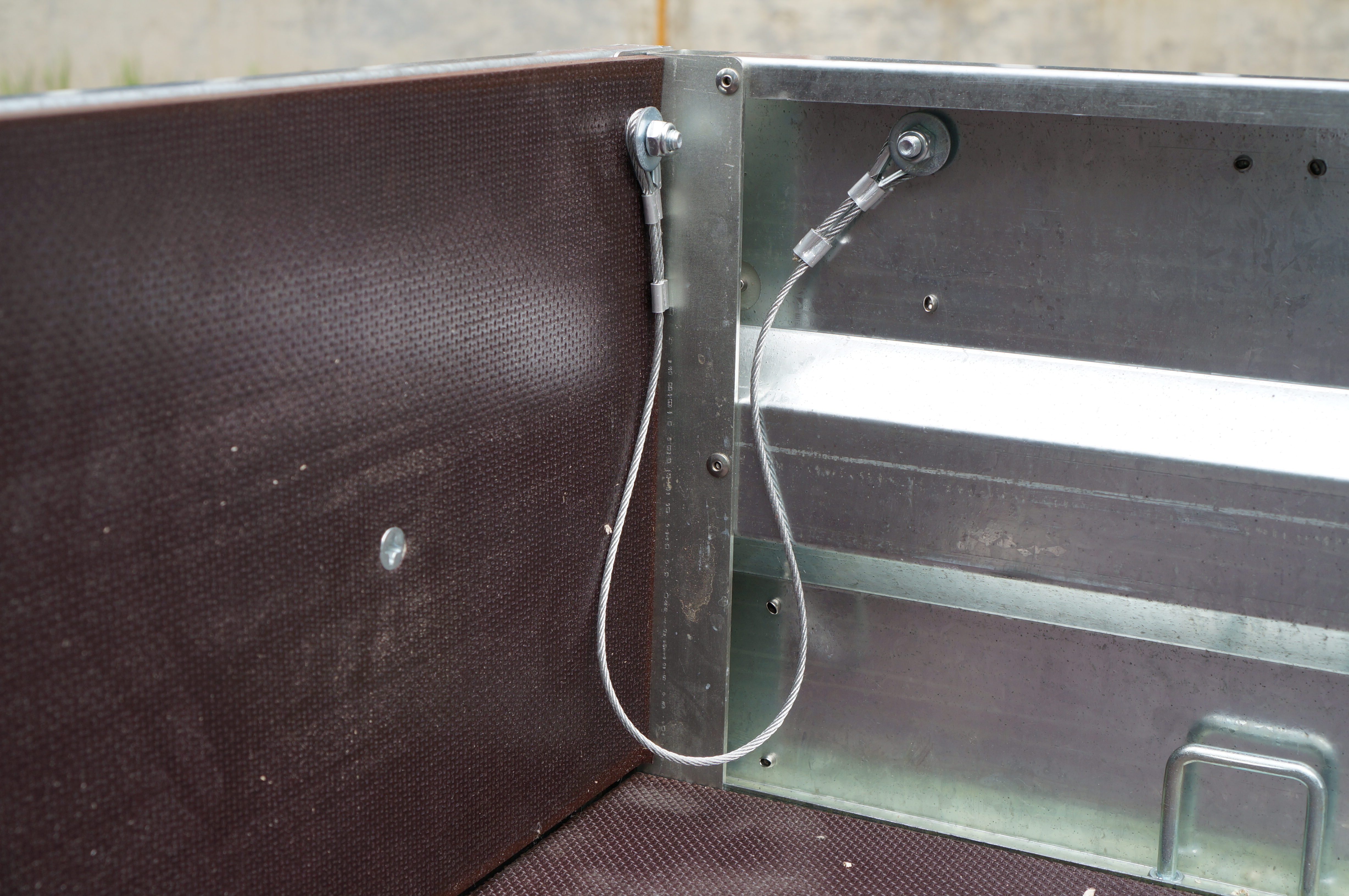 Борта толщиной 1,5 мм выполнены из оцинкованного металла с использованием лазерной резки и высокоточной гибки, оборудованы скобами для крепления евро-тента. Устойчивость к деформации, высокую жесткость обеспечивает специальный гнутый профиль борта. Передний и задний откидные борта усилены фанерой, быстросъемные, фиксируются бортовыми замками. Задний борт оборудован тросиками, усилены места крепления тросиков к бортам. Стойки бортов выполнены из 3 мм оцинкованной стали, есть возможность фиксации каркаса тента к стойкам боковых бортов.