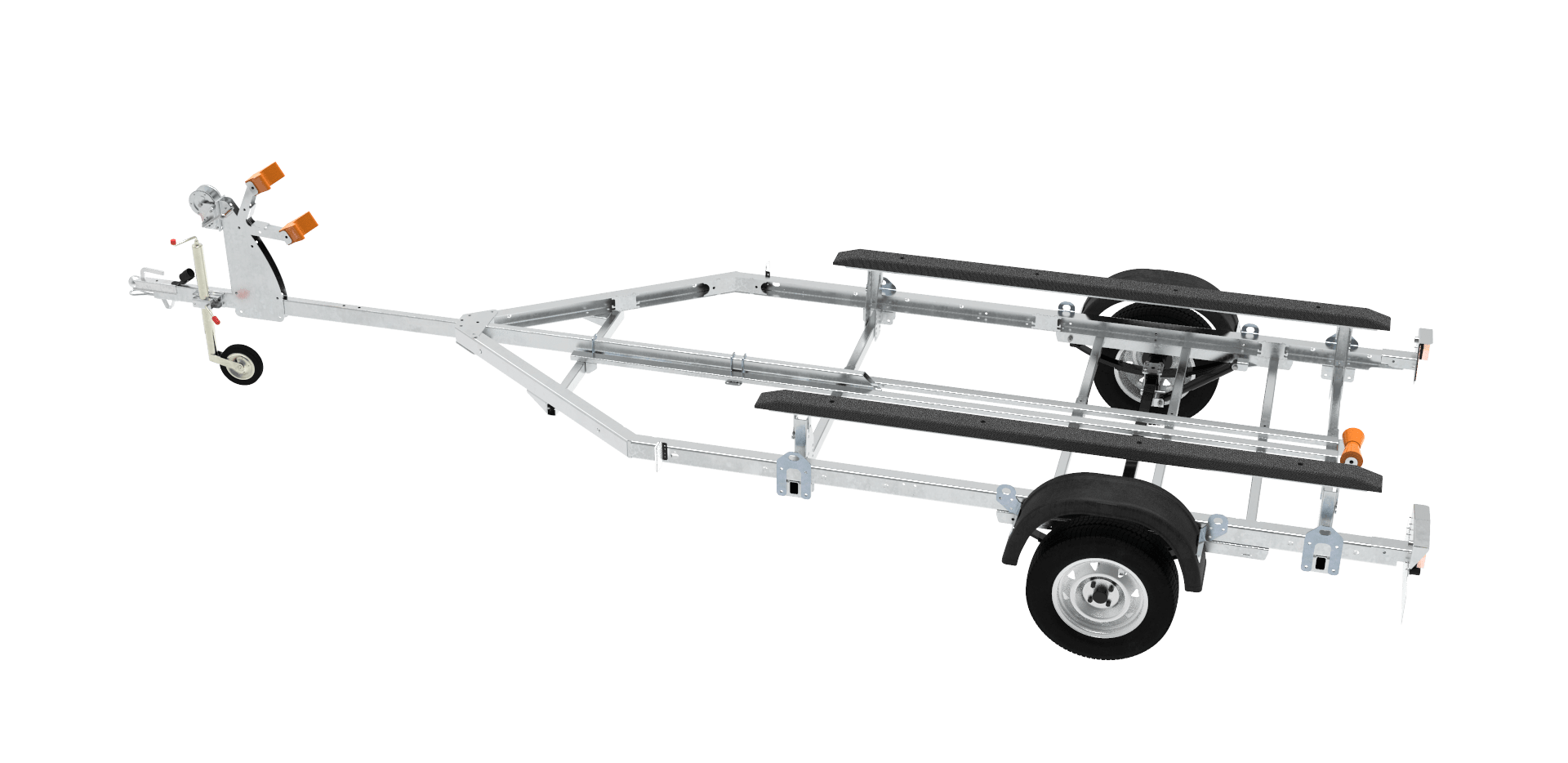 Изменяемое положение подвески (шасси) прицепа позволяет правильно распределить центр тяжести погруженного судна.